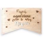 Cartel de madera con el mensaje Papá aquí viene la Novia, ideal para que tus pequeñas damas o pajes adelanten tu entrada de una forma elegante y original! ligero y cómo de llevar para los más peques.