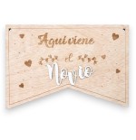 Cartel de madera con el mensaje Aquí viene el Novia, ideal para que tus pequeñas damas o pajes adelanten tu entrada de una forma elegante y original! ligero y cómo de llevar para los más peques.