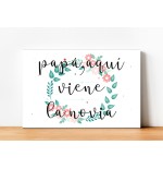Cartel con bonito diseño de corona floral, con tonos suaves y elegantes.