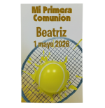 Bálsamo labial en forma de pelota de tenis, con tarjeta personalizada con nombre y fecha a juego de Primera Comunión.