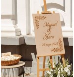 Cartel de madera personalizado para boda con elegante diseño creado para colocar en vertical, perfecto por su sencillez y elegancia.