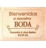 • Diseño: Incluye el texto "Bienvenidos a nuestra boda" según diseño mostrado y personalizado con vuestros nombres y fecha de boda.