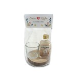 Pack de Licor de crema de 50 cml botella de cristal, chupito de cristal y original posavasos de madera, un regalo ideal para repartir a tus invitados, tanto de forma individual como por pareja.