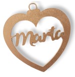 BOLA DE NAVIDAD CON FORMA DE CORAZÓN Y PERSONALIZADA CON LOS NOMBRES EN SU INTERIOR.