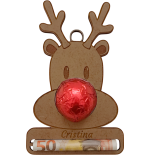 Sorprende esta Navidad con un detalle único y divertido. Nuestro adorno de reno personalizado es el regalo perfecto para decorar el árbol y, al mismo tiempo, incluir un pequeño obsequio: un bombón y un billete.