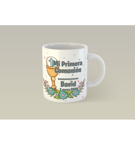 Original taza personalizada con sublimación, ideal para regalar a tus invitados en un día tan especial, perfecta para comunión. El precio incluye la personalización con el nombre y fecha, en el diseño que se muestra.