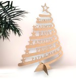 Árbol de Navidad de madera personalizado con los nombres de la familia, ideal para tener un recuerdo para siempre original y elegante en casa, acorde a cualquier tipo de decoración.