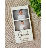 Incluye imán trasero para que se pueda colocar en el frigo y tengan un momento tan especial siempre en su recuerdo.