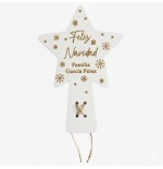 Estrella personalizada con vuestros apellidos para decorar tu árbol de Navidad, también puede personalizarse con tu propia frase.