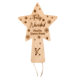 No olvide guardar su personalización para poder añadirla al carritoEstrella de madera para decorar tu árbol de Navidad, personalizada con los apellidos de la familia o con cualquier otro mensaje. Fabricada en madera DM de 3mm de grosor. Incluye cuerda. Medidas 20 x 13 cm. aprox.