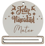 Diseño Exclusivo: Grabado láser con "Feliz Navidad + nombre" y motivos navideños.