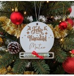 Celebra la magia de la Navidad con nuestro encantador adorno personalizado, perfecto para añadir un toque único a tu árbol o para hacer un regalo inolvidable. Este adorno de madera, finamente grabado con la frase "Feliz Navidad y el nombre de la persona a regalar" y delicados motivos navideños como renos y estrellas, es el detalle ideal para cualquier hogar.