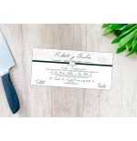Sofisticada y única, esta invitación combina un fondo blanco con exquisitos dibujos de estilo Kashmir y una elegante tipografía en tonos verde oscuro.
