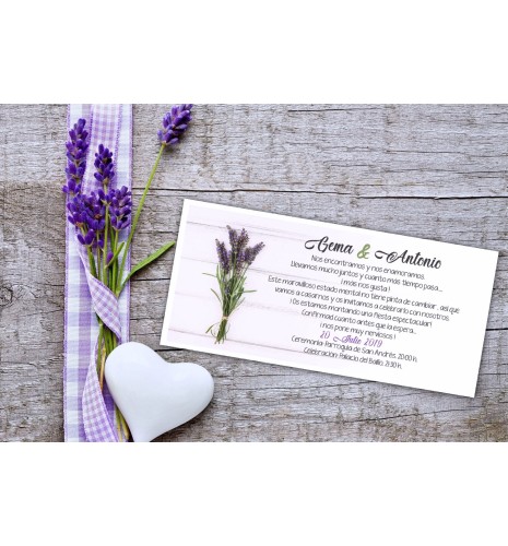 Con un toque suave y sofisticado, esta invitación destaca por sus detalles y colores de lavanda, brindando un diseño fresco y delicado. Ideal para bodas con un estilo romántico, elegante y natural.