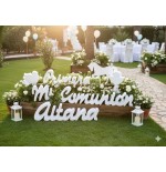El pack incluye el texto: Mi Primera Comunión + 1 nombre del niño o niña y silueta caballo, incluye un sólo nombre, para nombres compuestos puedes comprar el nombre adicional pinchando AQUÍ