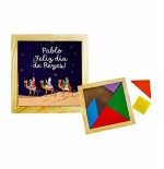 Puzzle Tangram de Madera Multicolor personalizado con tarjeta con su nombre y el texto Feliz día de Reyes, ideal para regalar a los más peques!