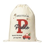 Haz que la Navidad sea aún más especial con nuestro saco navideño personalizado con el nombre y su inicial con divertido coche con papá Noel, ideal para Nochebuena!