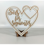 Dale un toque especial y divertido a tu boda con este precioso adorno de madera con la frase “Sois los siguientes”. Su diseño en forma de doble corazón y letras caladas lo convierte en un detalle perfecto para entregar al próximo grupo de amigos o familiares que, según la tradición, podrían ser los siguientes en casarse.