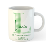 Original taza personalizada con sublimación, ideal para regalar a tus invitados en un día tan especial, perfecta para comunión, boda, bautizo o tener un original detalle con tus amig@s. El precio incluye la personalización con la Inicial y el nombre superpuesto, en el diseño que se muestra.