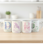Se personaliza cada taza con un nombre, escribir la lista de nombres en el apartado PERSONALIZACION DEL PRODUCTO, en nombres compuestos se pondrá sólo una inicial.