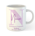 Original taza personalizada con sublimación, ideal para regalar a tus invitados en un día tan especial, perfecta para comunión, boda, bautizo o tener un original detalle con tus amig@s. El precio incluye la personalización con la Inicial y el nombre superpuesto, en el diseño que se muestra.