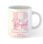 Original taza personalizada con sublimación, ideal para regalar a tus invitados en un día tan especial, perfecta para comunión, boda, bautizo o tener un original detalle con tus amig@s. El precio incluye la personalización con la Inicial y el nombre superpuesto, en el diseño que se muestra.