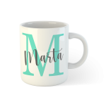 Original taza personalizada con sublimación, ideal para regalar a tus invitados en un día tan especial, perfecta para comunión, boda, bautizo o tener un original detalle con tus amig@s. El precio incluye la personalización con la Inicial y el nombre superpuesto, en el diseño que se muestra.
